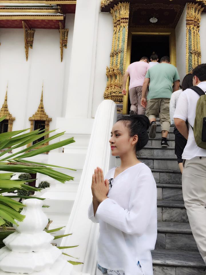 khi đi du lịch nước ngoài cô cũng chăm chỉ đi chùa.