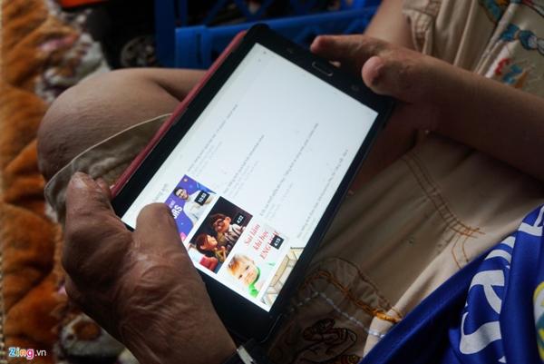 Dù đôi tay khuyết tật nhưng cậu bé sử dụng iPad và điện thoại thuần thục.