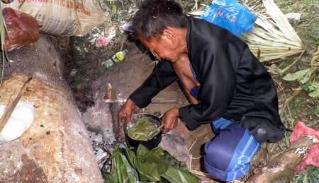 Ông Phẩy bảo, giờ già rồi, chẳng còn sức khỏe để săn bắt, đào bới củ rừng nữa, ông ấy chỉ còn biết đi nhặt rau rừng, quả rừng để sống qua ngày. Mùa thảo quả - ăn thảo quả, mùa măng – ăn măng, đến khi không còn những hoa củ quả ấy nữa, ông lão chỉ còn biết nhặt lá rừng làm rau ăn trừ bữa hoặc uống nước cầm hơi…