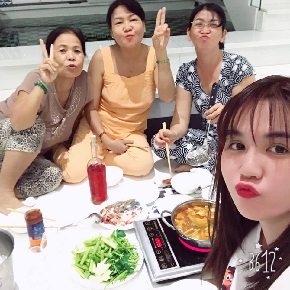 Bên bữa tiệc gia đình của Ngọc Trinh và mẹ còn có sự góp mặt của hai người phụ nữ lớn tuổi. Người mẫu nội y cho biết đây là hai người làm trong nhà. Bộ ba chủ nhà - người giúp việc rất hào hứng cùng nhau ghi lại khoảnh khắc kỷ niệm. Đính kèm hình ảnh, Ngọc Trinh khoe: "Ngày lễ với ba bạn nhậu: mẹ và hai cô người làm".