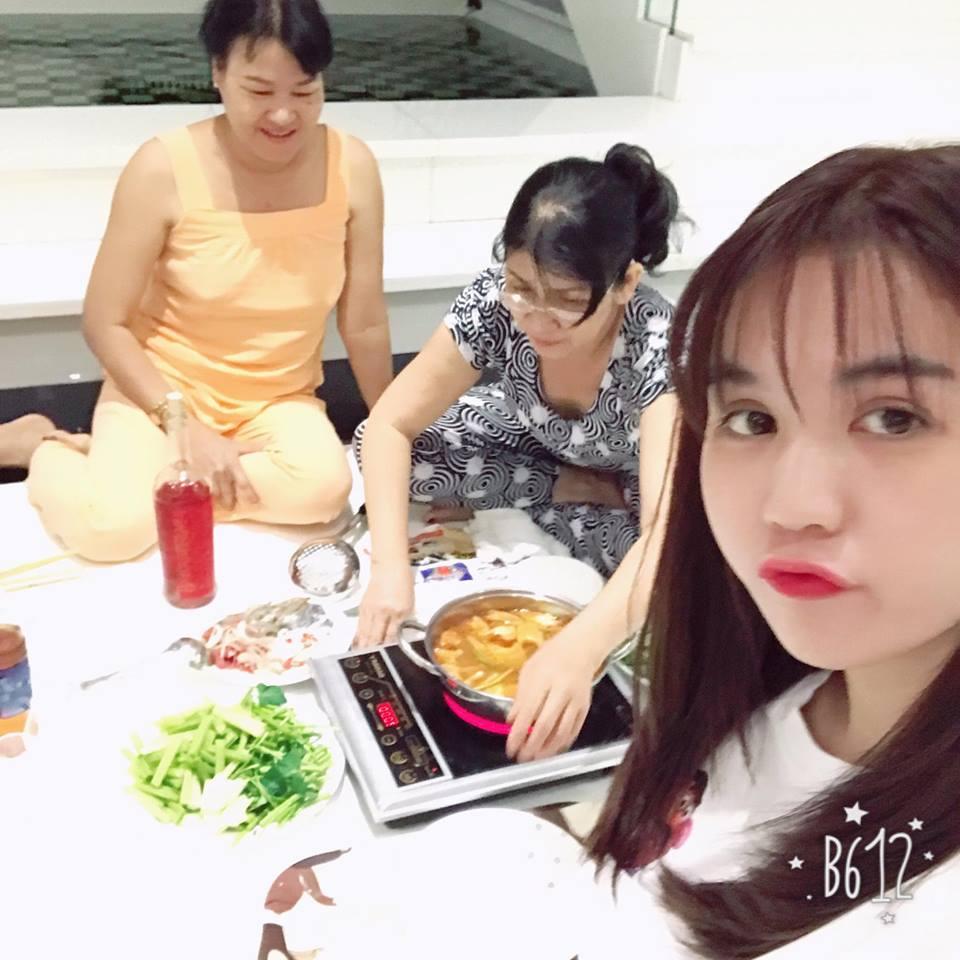 Bên bữa tiệc gia đình của Ngọc Trinh và mẹ còn có sự góp mặt của hai người phụ nữ lớn tuổi. Người mẫu nội y cho biết đây là hai người làm trong nhà. Bộ ba chủ nhà - người giúp việc rất hào hứng cùng nhau ghi lại khoảnh khắc kỷ niệm. Đính kèm hình ảnh,  Ngọc Trinh khoe: "Ngày lễ với ba bạn nhậu: mẹ và hai cô người làm".