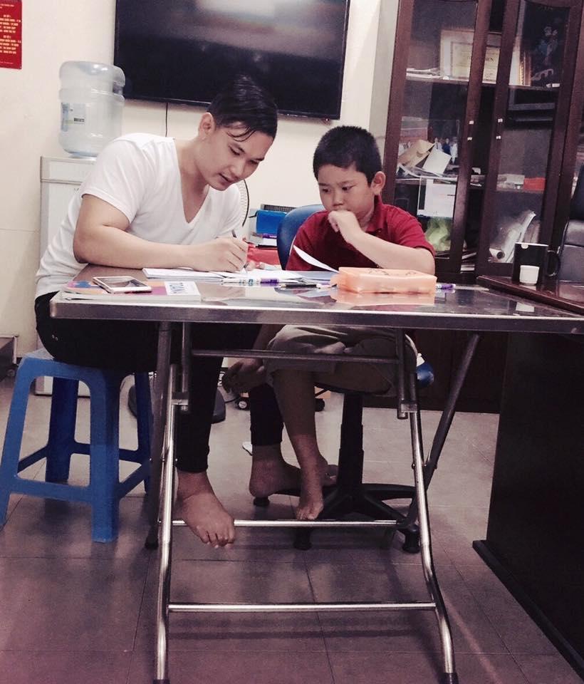 Hình ảnh đời thường giản dị ngồi dạy em học của bạn trai Kỳ Duyên