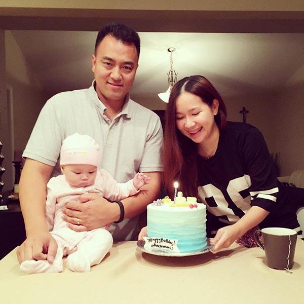 Trong những khoảnh khắc đời thường bên chồng và cô con gái xinh xắn,