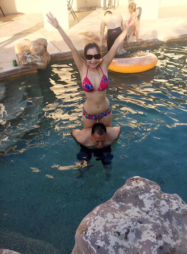 Tuy nhiên, khi đi diễn hoặc cùng gia đình đi nghỉ dưỡng, Duy Uyên vẫn trung thành với mốt gợi cảm vừa đủ.