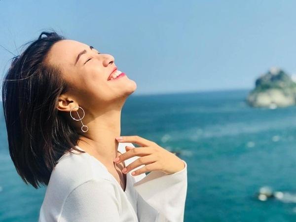 Nụ cười rạng rỡ, an yên của Hoàng Oanh hiện tại có thể thấy cô có cuộc sống bình dị sau hơn 1 năm chia tay Huỳnh Anh.