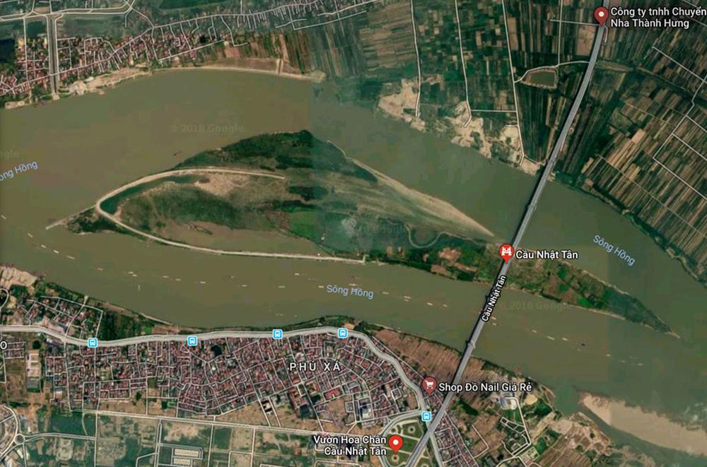 Toàn cảnh "hòn đảo bị lãng quên" ở chân cầu Nhật Tân. Ảnh: Google Maps.