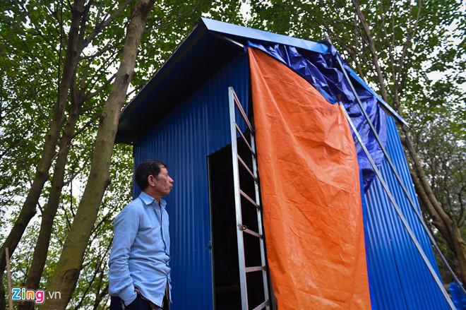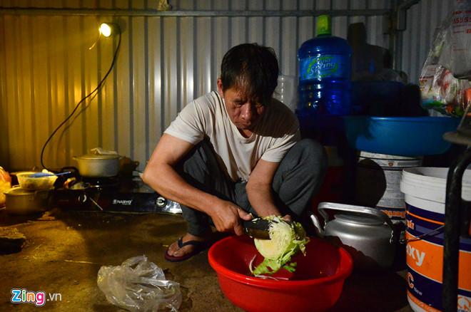 Sáng hôm sau mới có người mang nguyên vật liệu ra để dựng lán tôn. Cái lán dành cho người trông đất rộng chưa đầy 10 m2 với một chiếc giường đơn, một bếp ga và một máy phát điện. Nguồn sáng duy nhất trong nhà là một chiếc đèn chạy bằng ắc quy.