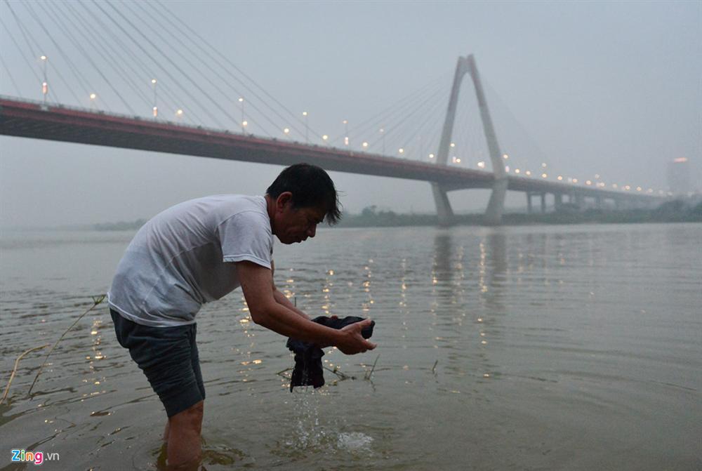 Mỗi ngày, ông mang quần áo ra sông giặt để tiết kiệm nước vì không phải lúc nào cũng có thể chạy máy nổ.