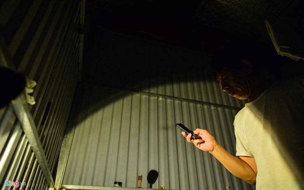 Thiếu điện, nguồn sáng duy nhất của ông và chiếc đèn ắc quy và liên lạc về nhà bằng điện thoại đen trắng.