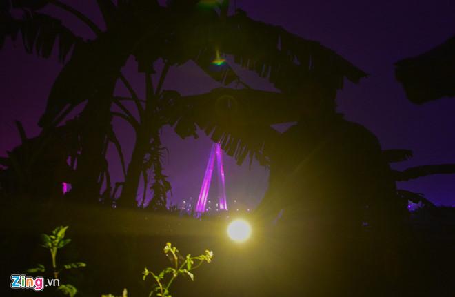20h, chiếc thuyền máy từ bờ nam chạy “phành phạch” sang bãi giữa. Người lái thuyền nhìn thấy 2 vị khách trên đảo nhờ ánh đèn rực rỡ của cây cầu khổng lồ. "Khách ra đảo dạo này đông lắm, tương lai là khu du lịch đấy", người lái thuyền hào hứng chia sẻ.