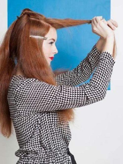 Sau đó bạn chia tóc thành những lọn nhỏ, kéo thẳng để dễ cuốn.