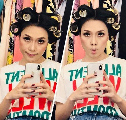 Mỹ Tâm cũng đặc biệt chú trọng ngoại hình mỗi khi xuất hiện, thế nên khi cô đăng tải những hình ảnh selfie nhắng nhít với hàng tá đống lô cuốn trên đầu khi đang chờ làm tóc khiến fan thích thú. Lần đầu tiên khán giả thấy được hình ảnh hậu trường “làm trò” của Mỹ Tâm khác biệt với sự xinh đẹp lộng lẫy trước đây.