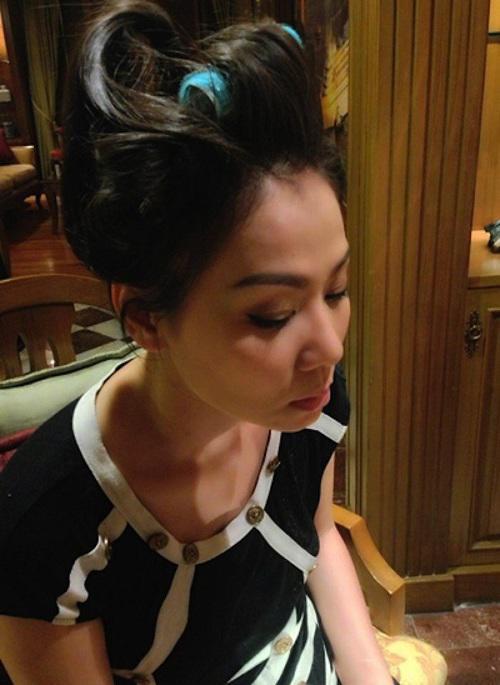 Để có được kiểu tóc ưng ý, ca sĩ Thu Minh còn phải tranh thủ vừa ngủ vừa cuốn lô để kịp giờ lên sân khấu với mái tóc hoàn hảo nhất.