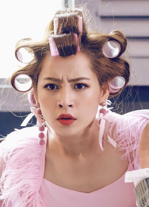 Trong MV “Em sai rồi anh xin lỗi em đi”, Chi Pu cũng xuất hiện trong mái tóc lô cuốn đầy đầu khiến fans thích thú.