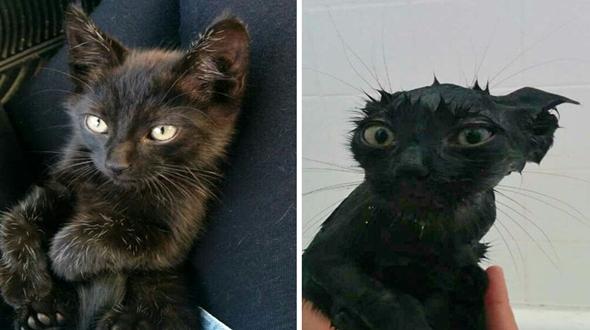 Việc tắm rửa luôn khiến những chú mèo "ngây ngô" hơn.