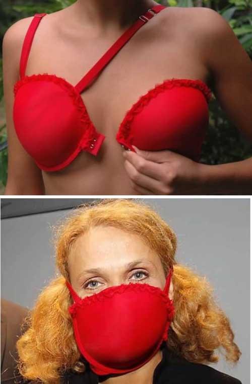 Chiếc áo lót đã trở thành một chiếc khẩu trang giúp bạn "dễ thở" hơn khi tham gia giao thông