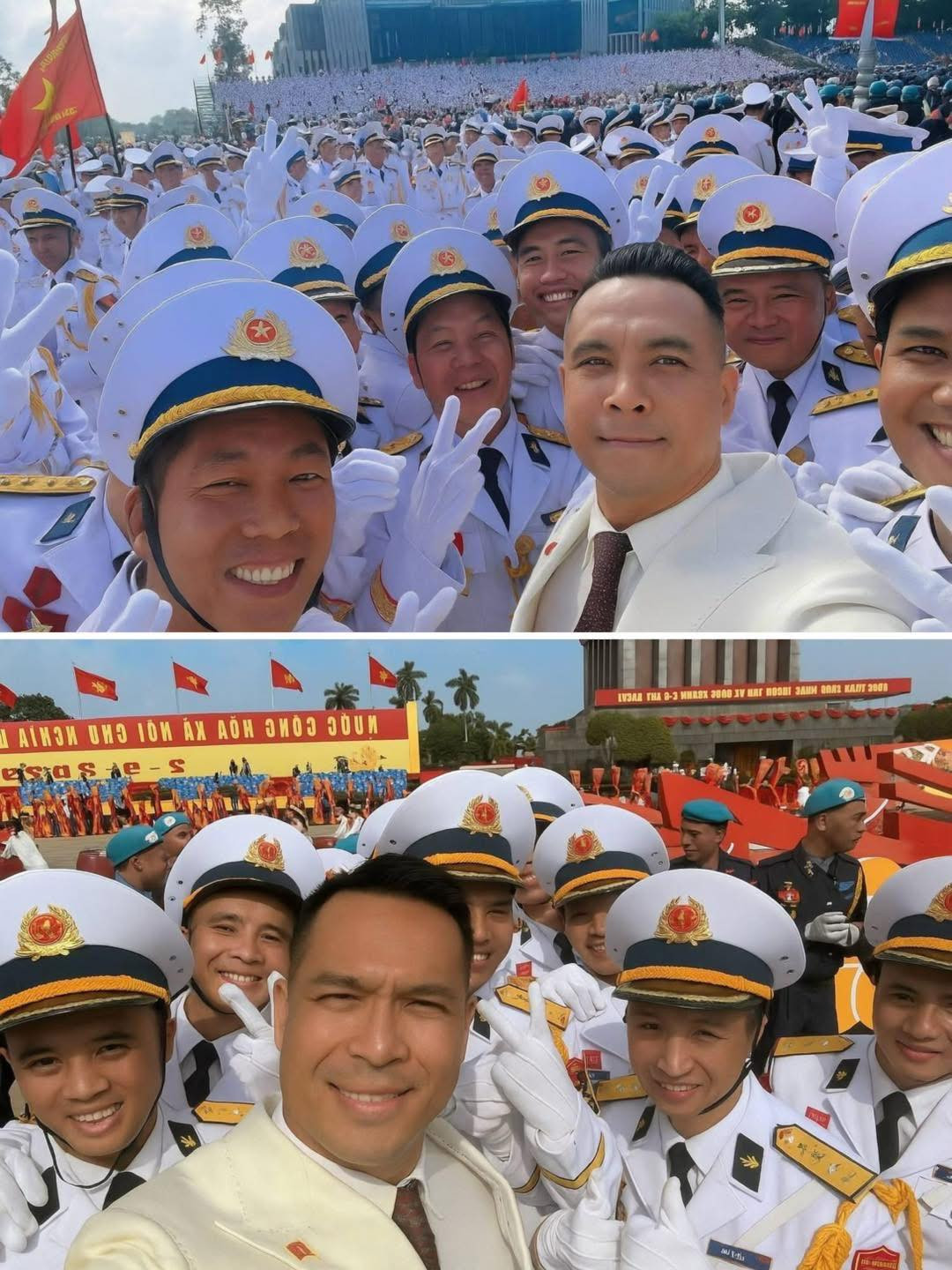 Đây là một dịp lễ lớn và là một trong những gương mặt vinh dự đại diện khối Văn hóa - thể thao để tham gia diễu binh chắc hẳn Trương Thế Vinh lẫn các sao Việt đều mong có một tấm hình đẹp để "sĩ" với đời. Tuy nhiên, loạt ảnh của nam diễn viên khiến khán giả "dở khóc dở cười".