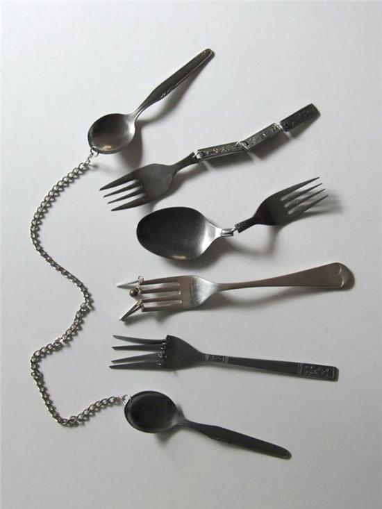 Dĩa, thìa được gắn mắt xích "lủng liểng" thế này, đảm bảo bạn lấy thức ăn vô cùng "dễ dàng", gắp hoài không được.