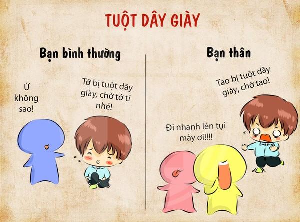 Bạn thân tức là ăn ý tới mức bạn chẳng cần nói ra cả câu hoàn chỉnh nó cũng hiểu. Chỉ cần hai đứa với nhau thì đi đâu cũng được, làm gì cũng vui, ăn gì cũng thích, ngồi đần người chẳng nói gì với nhau cũng "được" luôn.