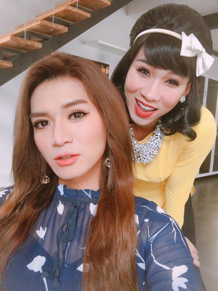 "Mẹ chồng" và "nàng dâu" thân mật chụp ảnh trong hậu trường.
