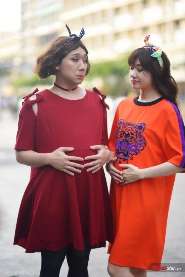 Trường Giang là một nhân tố thú vị trong “Khi đàn ông mang bầu”, bời ngoài khả năng ăn nói, anh chàng còn chẳng ngại “làm xấu” mình với hình tượng “bà bầu” khó đỡ thế này.