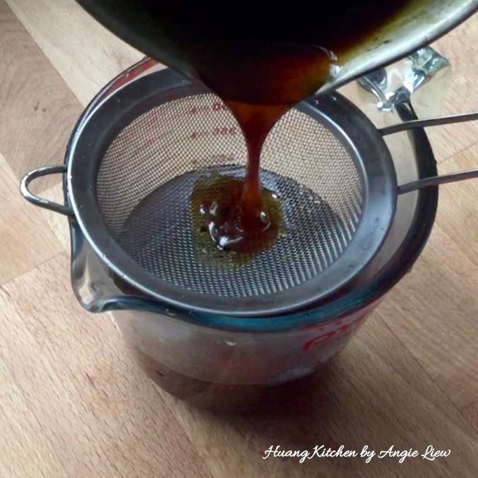 Bước 4: Khi đường thốt nốt tan hoàn toàn thì tắt bếp, đổ siro đường thốt nốt qua rây để loai bỏ cặn. Để siro ở nhiệt độ phòng cho nguội hẳn.
