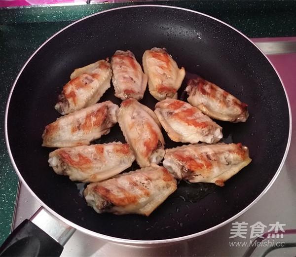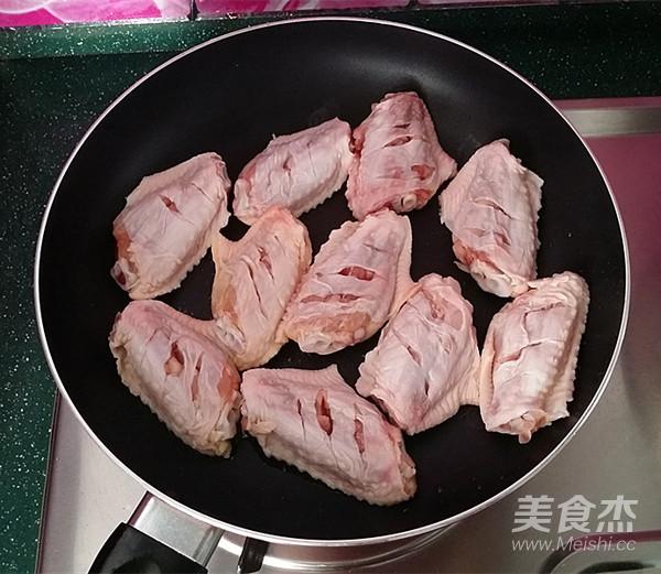 Bước 5: Cánh gà cho vào áp chảo. Lưu ý úp phần không khía xuống