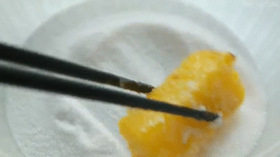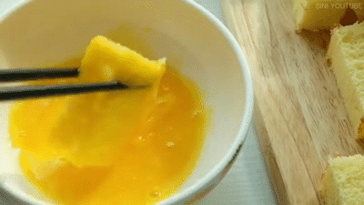 - Nhúng từng miếng bánh sao cho trứng áo đều khắp các mặt bánh.