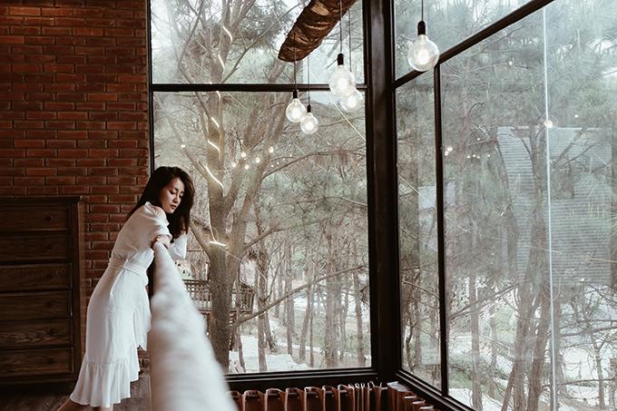“Khi nằm thảnh thơi nhâm nhi tách trà và đọc một cuốn sách hay giữa không gian thiên nhiên như thế này, tôi bỗng có cảm giác mình giống nhân vật nữ chính trong một bộ phim ngôn tình nào đó”, Quỳnh Chi chia sẻ.