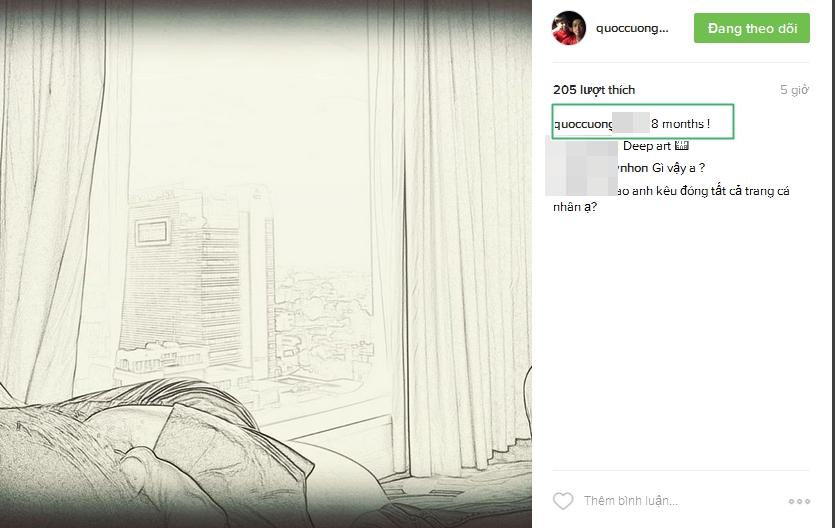 Sau thời gian thông báo đóng cửa trang cá nhân, mới đây Cường đô la đã mở lại và chia sẻ hình ảnh cùng dòng caption ngắn gọn: "8 months" đầy ẩn ý thu hút sự chú ý của công chúng. Với những ai yêu mến và dõi theo Vi - Cường sẽ thấy, tin đồn tình cảm của cặp đôi bắt đầu rộ lên từ tháng 10/2015, tính đến nay là tháng 6/2015 là 8 tháng. Vì vậy, nhiều người cho rằng phải chăng chia sẻ đầy ẩn ý mới đây của đại gia phố núi là nhằm hướng tới kỷ niệm 8 tháng tình yêu của hai người.