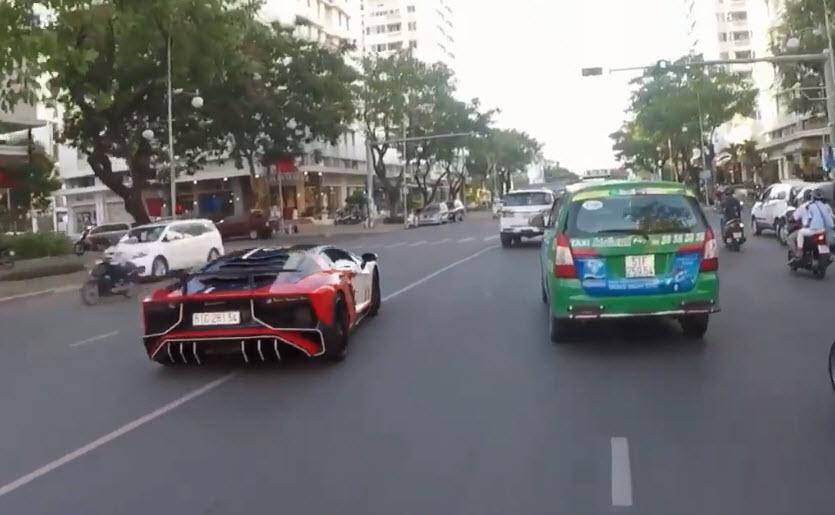 Cường "Đô La" cám ơn Minh "Nhựa" cho chạy thử Lamborghini Aventador LP750-4 SV.