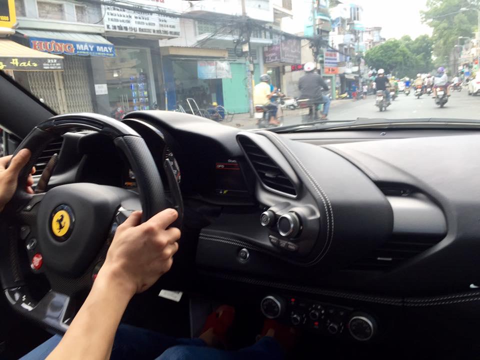 Được biết, Ferrari 458 là một trong những siêu xe đắt đỏ hiện nay, nó có giá ngoài thị trường khoảng trên dưới 15 tỷ đồng. Qua hình ảnh cho thấy, Quốc Cường đã nhanh chóng lái siêu xe Ferrari 458 xuống phố.