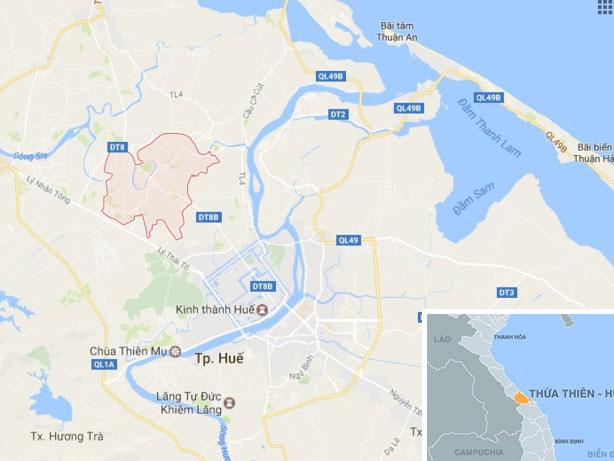 Xã Hương Toàn, địa điểm xảy ra vụ bé trai đuối nước. Ảnh: Google Maps.