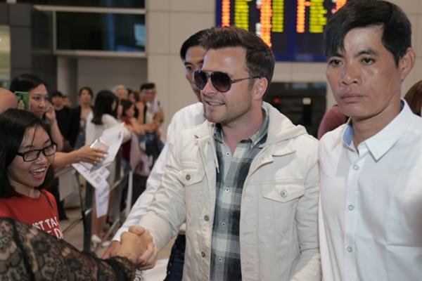 Shane Filan thân thiện bắt tay người hâm mộ khi vừa đáp chuyến bay. Ảnh: PV.