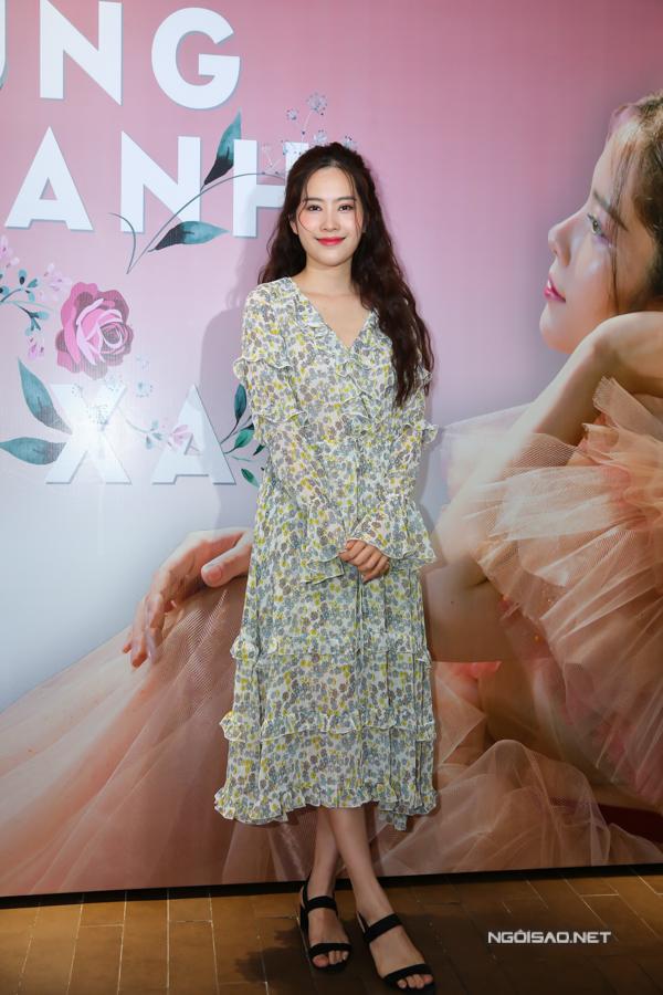 Nam Em bắt kịp xu hướng thời trang hè 2018 với váy bèo nhún in họa tiết hoa nhí, sandal và kiểu tóc rối tự nhiên. Tuy nhiên, bộ cánh này phù hợp với những buổi mua sắm, đi cà phê hay nghỉ mát hơn là xuất hiện trong một buổi họp báo.