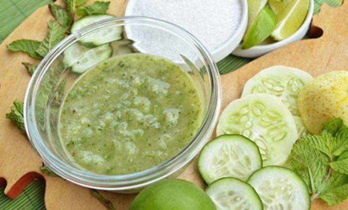 Dưa chuột ép lấy nước, sau đó trộn đều nước ép với lòng trắng trứng đã được đánh bông.