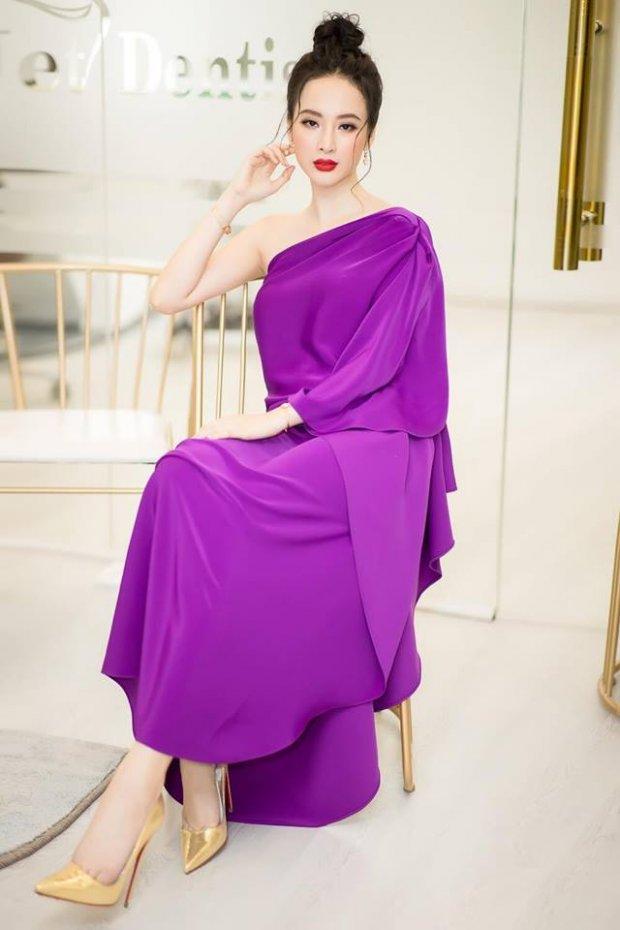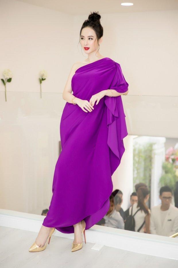 Đặc biệt trang phục với gam màu tím nổi bật nếu không khéo léo sẽ cộng thêm cho người mặc vài tuổi hoặc sẽ ngay lập tức rơi vào hội sến sẩm. Tuy nhiên ở bộ trang phục này Angela Phương Trinh không những không bị già hay quê mà còn giúp cô trông sang trọng, kiêu sa hơn. Đồng thời màu tím ngọt ngào cũng giúp diễn viên Mùi ngò gai tôn lên làn da trắng mịn màng của mình.