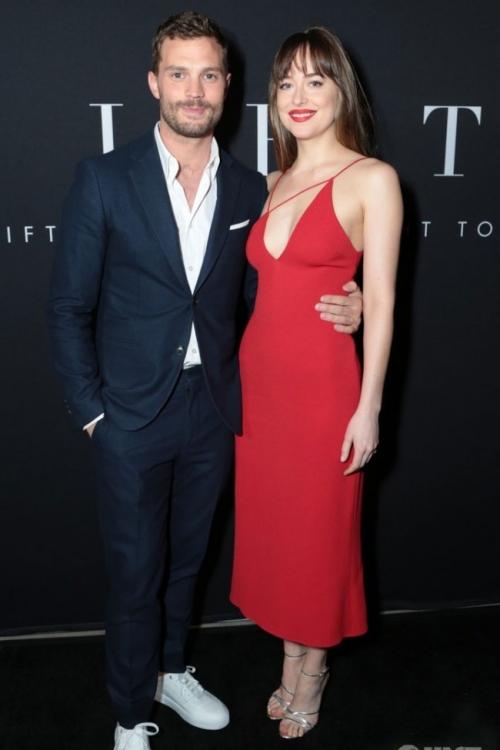Tuy nhiên, nhiều người nhận ra thiết kế đầm của Ngọc Trinh giống với bộ cánh mà nữ diễn viên phim "50 sắc thái" - Dakota Johnson diện trước đó. Được biết, thiết kế này thuộc thương hiệu Cushnie et Ochs có giá khoảng 30 triệu đồng.