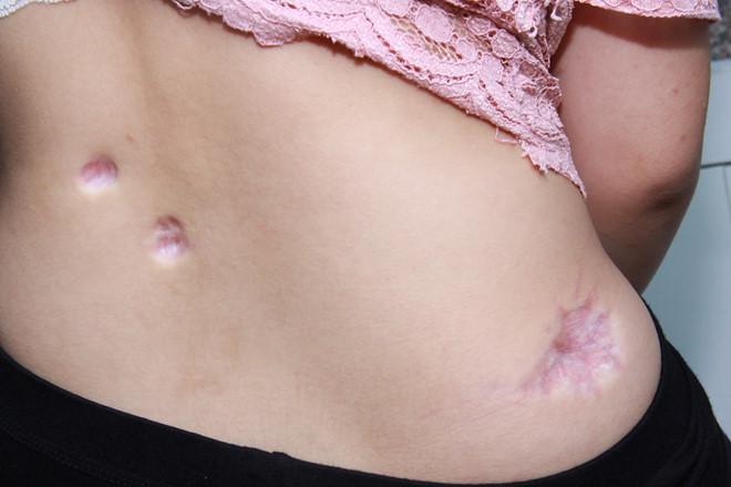 Qua thăm khám, bác sĩ Vũ Thị Hồng Luyến, khoa Nghiên cứu và Ứng dụng công nghệ tế bào gốc, Bệnh viện Da liễu Trung ương, nhận thấy bệnh nhân có 4 tổn thương lõm sâu, teo tổ chức mô mềm dưới da, kích thước lớn. Bác sĩ chẩn đoán bệnh nhân bị biến chứng teo tổ chức dưới da do tiêm sẹo lồi tại chỗ.