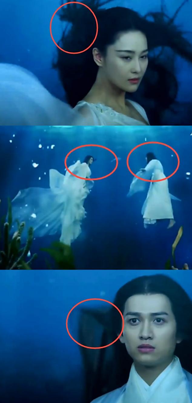 Khi đổi góc máy, vị trí tóc của hai diễn viên Trương Hinh Dư và Mã Khả cũng thay đổi