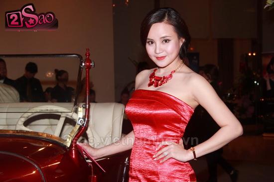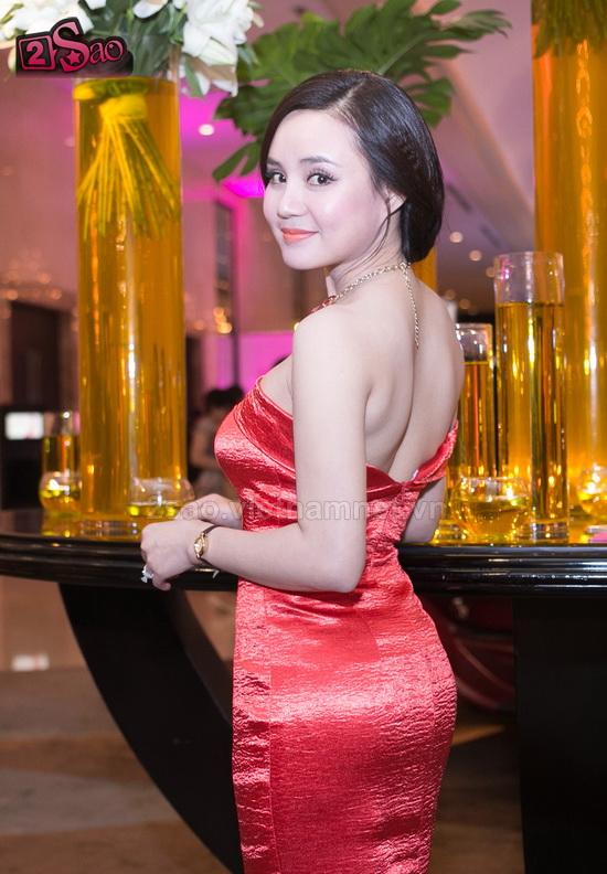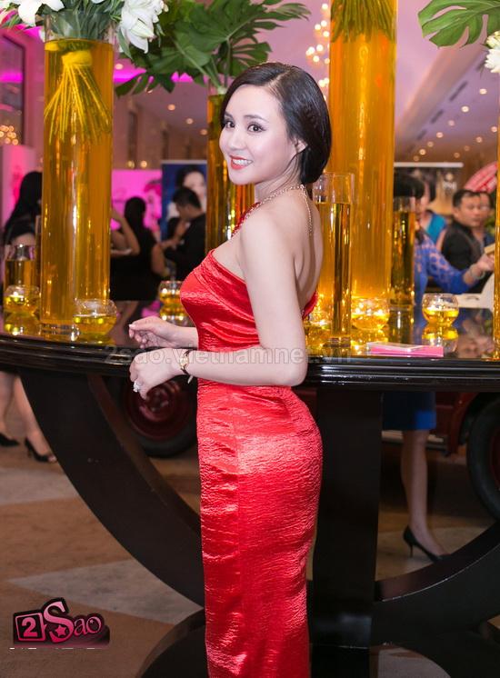 gây chú ý với mọi người bởi chiếc váy đỏ nổi bật khoe vai trần nuột nà.