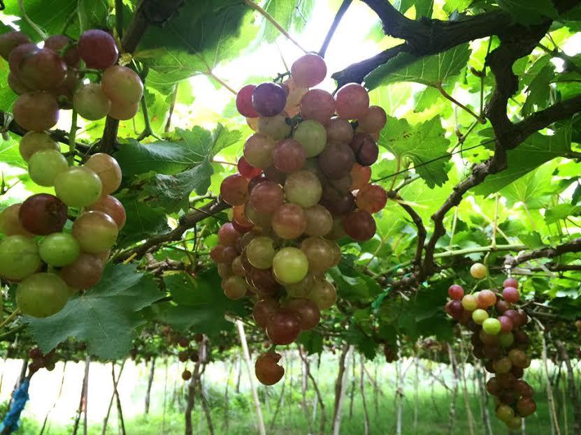 Du khách đến đây được tham quan các vườn nho căng mọng nước, tự tay chọn hái những chùm ngon và thưởng thức ngay tại vườn.