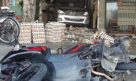Sau đó, ô tô 7 chỗ tiếp tục lùi mạnh, lao lên vỉa hè, đâm vỡ nát hàng chục khay trứng. Chưa dừng lại ở đó, ô tô tiếp tục lùi mạnh vào quán cà phê 265 Nguyễn Tri Phương và lùa toàn bộ bàn ghế trong quán, ép một người đàn ông (khoảng 50 tuổi) đang ngồi uống cà phê dính vào xe máy hiệu SH đang để trong nhà, sau đó tiếp tục đẩy nạn nhân ép vào tận quầy gỗ tính tiền và bàn thờ sát chân cầu thang thì chiếc ô tô mới dừng lại.