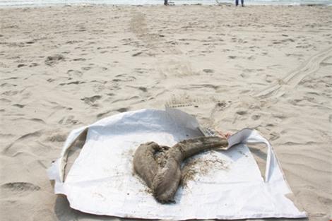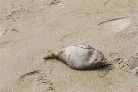 Chi cục thủy sản Đà Nẵng đã kiểm tra tình trạng cá chết dọc bãi biển. Ảnh: TT