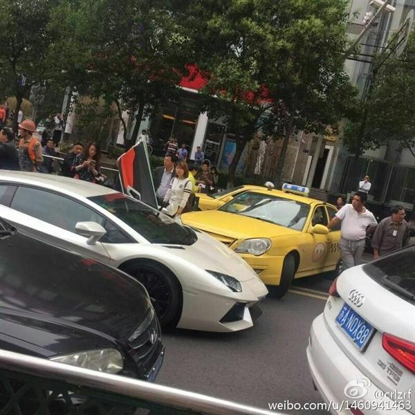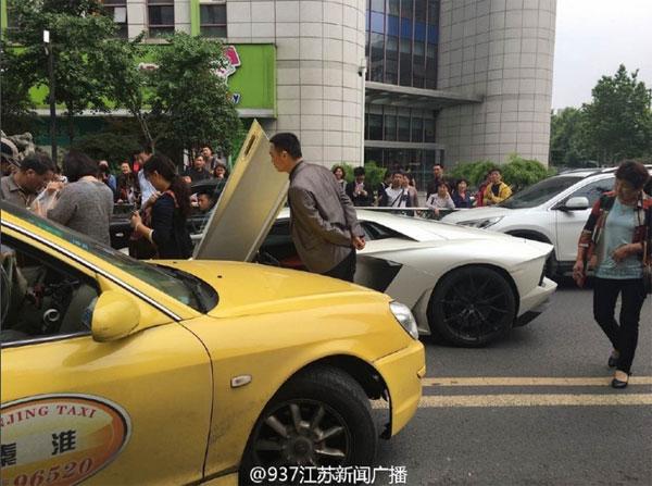 Vì chiếc siêu xe Lamborghini nên rất đông người đi đường hiếu kỳ đã đến xem