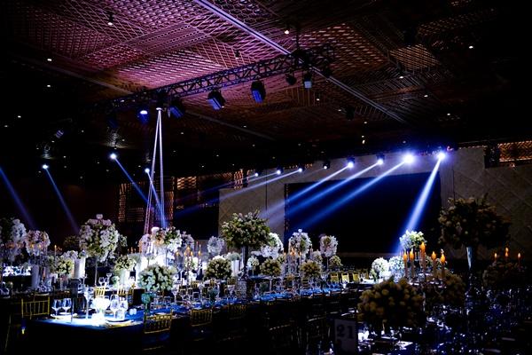 Không gian tổ chức tiệc cưới đang trang trí rất tinh tế