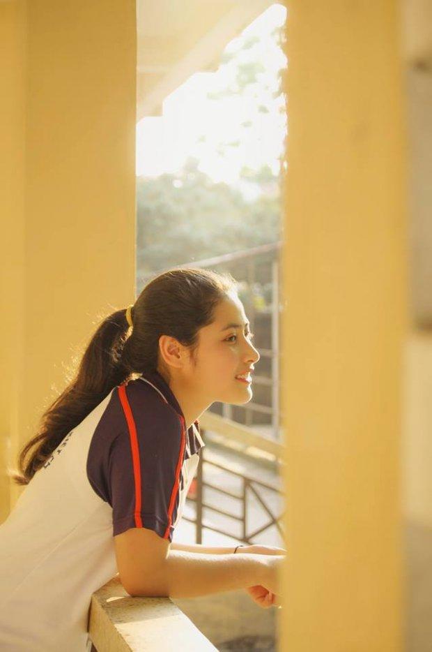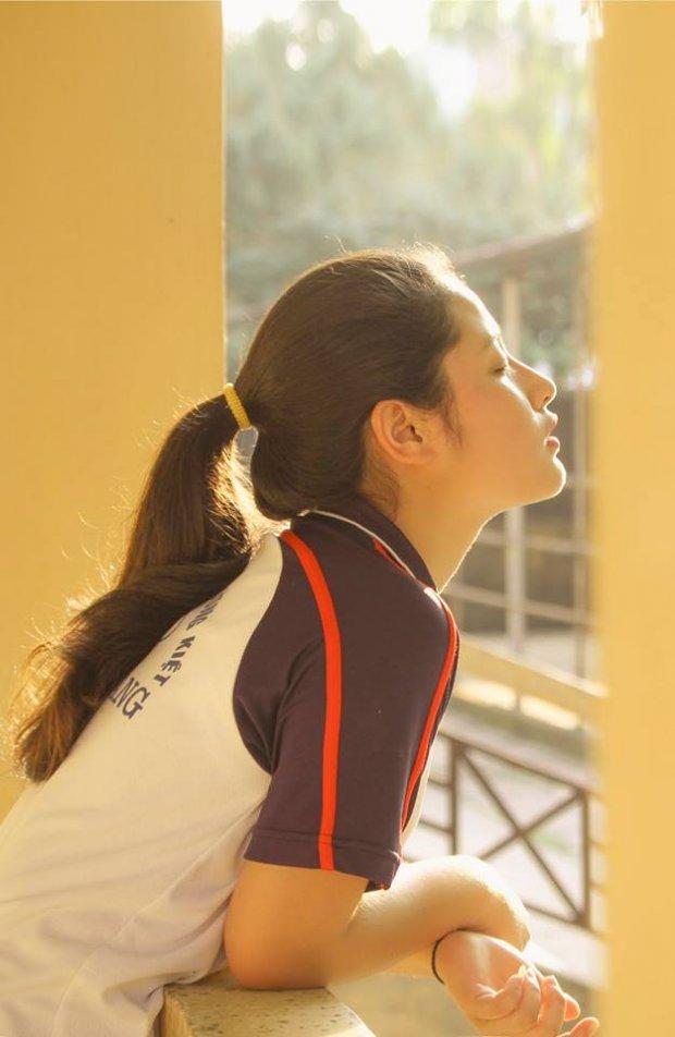 Chủ nhân bài viết cho biết nữ sinh trong ảnh tên là Huệ. Khi thực hiện những bức ảnh này, cô bạn để mặt mộc, thậm chí không kịp tô son cho tươi tắn.
