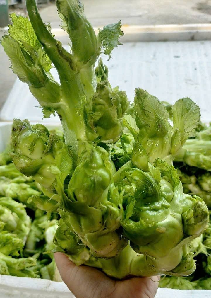 Sở dĩ có tên gọi lạ tai như vậy là bởi loại rau này có phần bẹ to và nhiều mầm non mọc tua tủa xung quanh, gợi liên tưởng đến hình ảnh những hòn đá nằm san sát xếp chồng lên nhau đang mọc mầm.