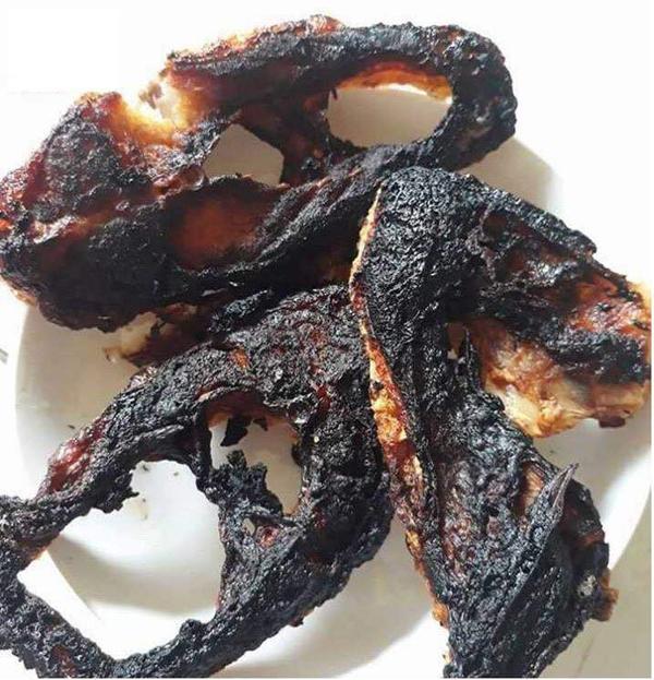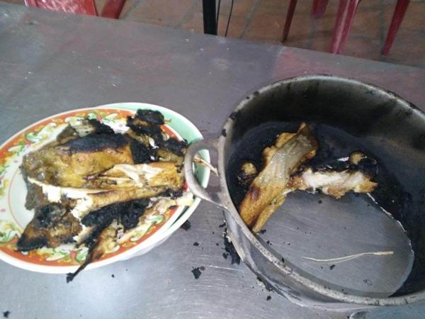 Cụ thể, trong bức ảnh, một cô gái mặt mất hồn bên nồi cá kho cháy đen, không có màu sắc hấp dẫn, hẳn là không thể ăn được. Không những thế, chiếc nồi dùng để kho cá còn bị cháy đến nỗi thủng cả đáy.