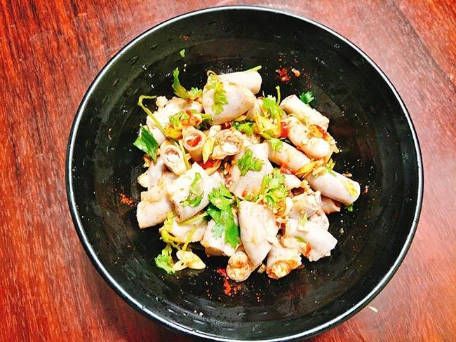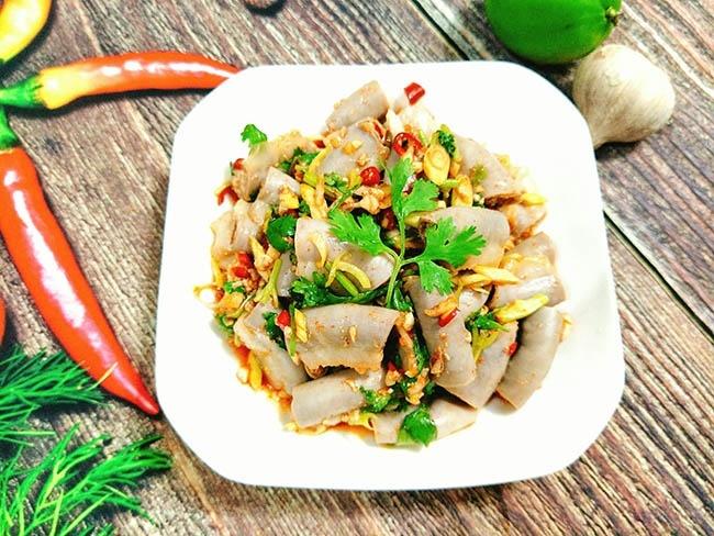 - Bước 3: Vớt lòng non ra để ráo nước rồi đem thái khúc ngắn vừa ăn.